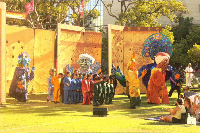 “El Teatro Campesino” Farm Worker theater in english presents out door theater at Grand Park, very colorful and lively in this 95 degee heat on Saturday in Los Angeles 10.10.15