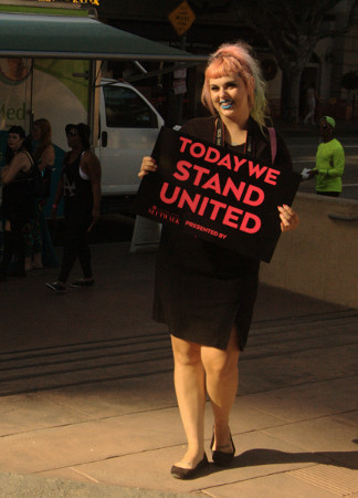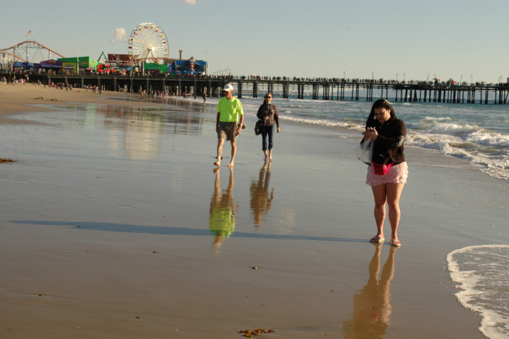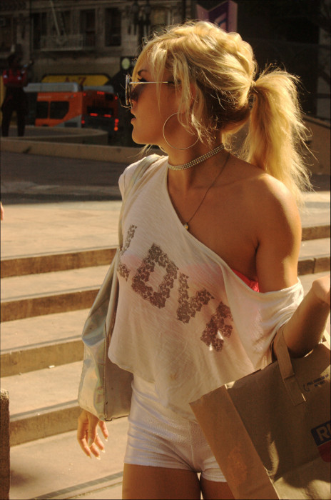 Looking down on Downtown Los Angeles Street & people in the Summer.